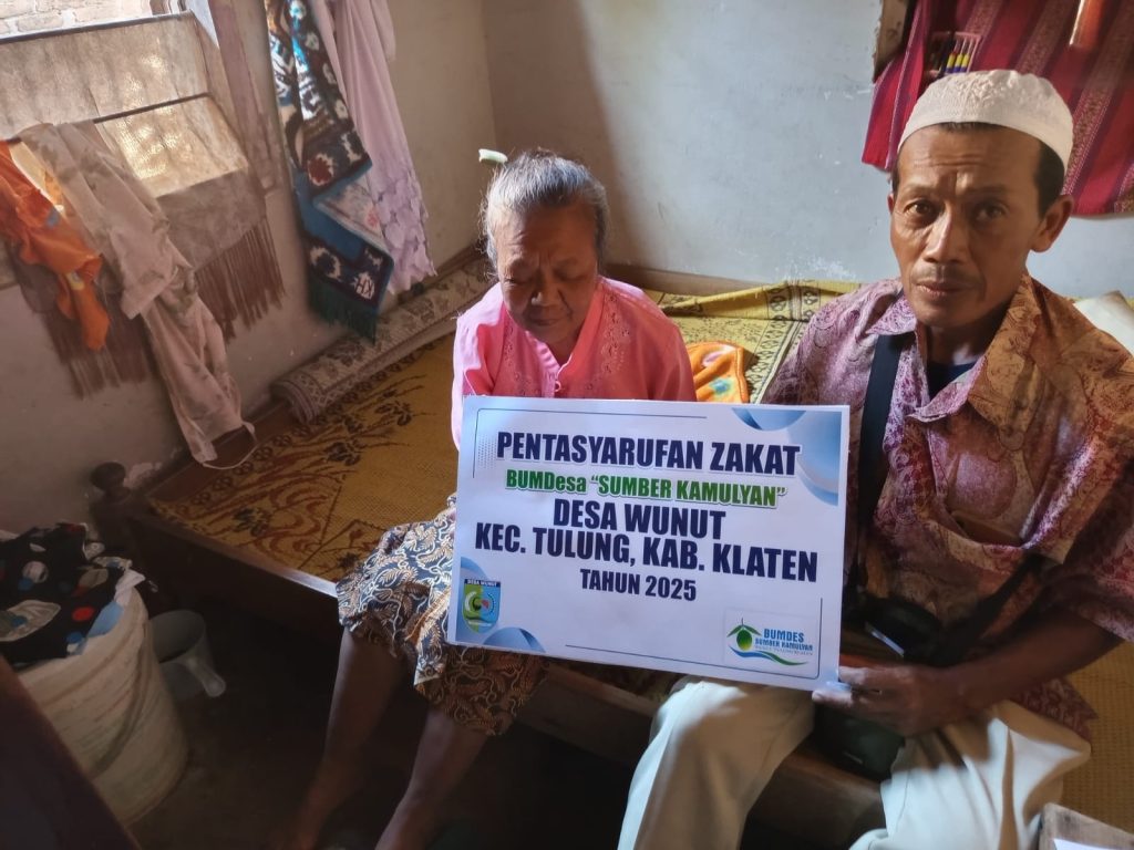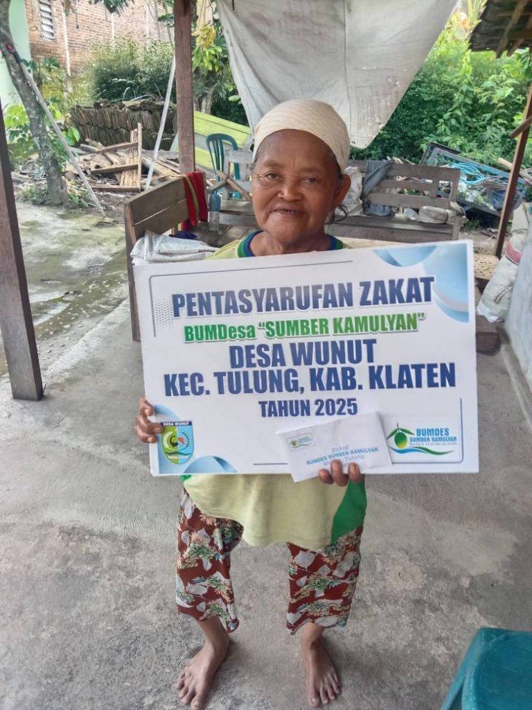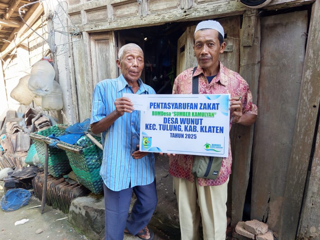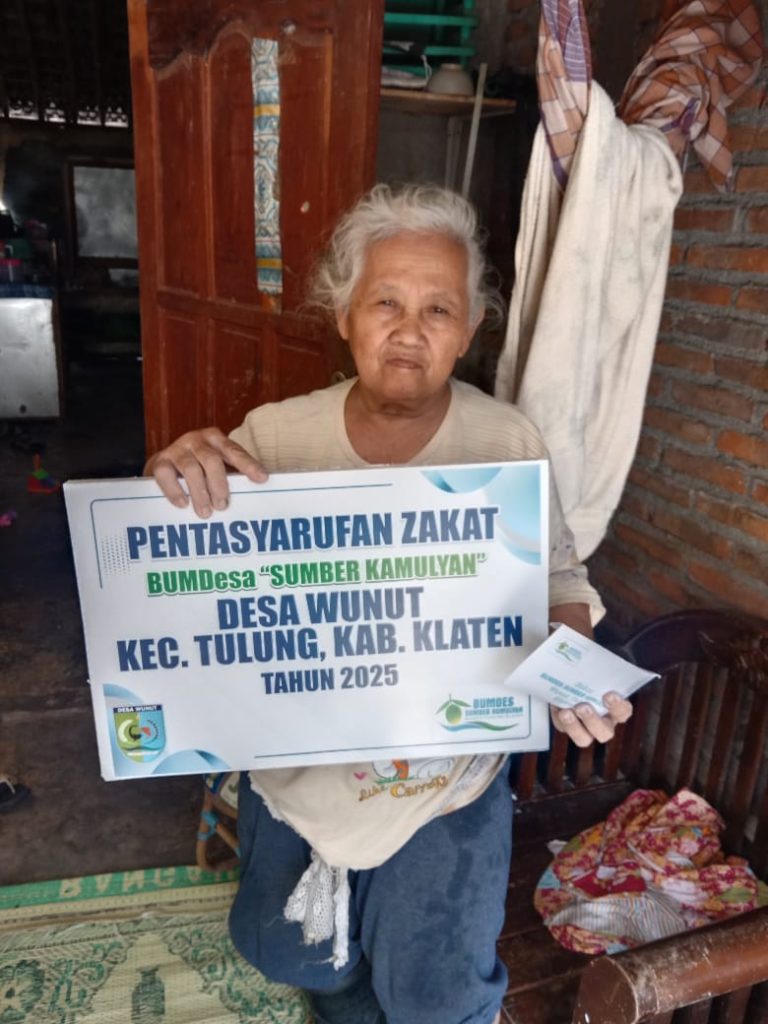 (desawunutklaten.id) Pada hari Selasa 6 Januari 2026 BUMDesa SUMBER KAMULYAN umbul pelem waterpark memberikan zakat maal kepada Fakir miskin, anak yatim dan para dhuafa di desa wunut, pembagian zakat di tasyarufkan oleh ketua RT di walayah masing masing, Pada tahun ini umbul pelem membagikan zakat maal sebesar Rp.682.000,- kepada 203 orang mustahik zakat di desa wunut.