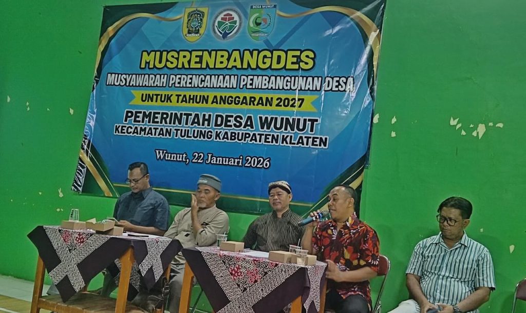 (desawunutklaten.id) Pada hari kamis, 22 Januari 2026 pemerintah desa wunut melaksanakan Musrenbangdes (musyawarah perencanaan pembangunan desa) untuk tahun 2027. Musrenbangdes adalah sebuah proses perencanaan pembangunan desa yang partisipatif, dimana masyarakat desa wunut secara aktif terlibat dalam diskusi, merumuskan, dan menentukan prioritas pembangunan yang dilakukan di desa wunut.